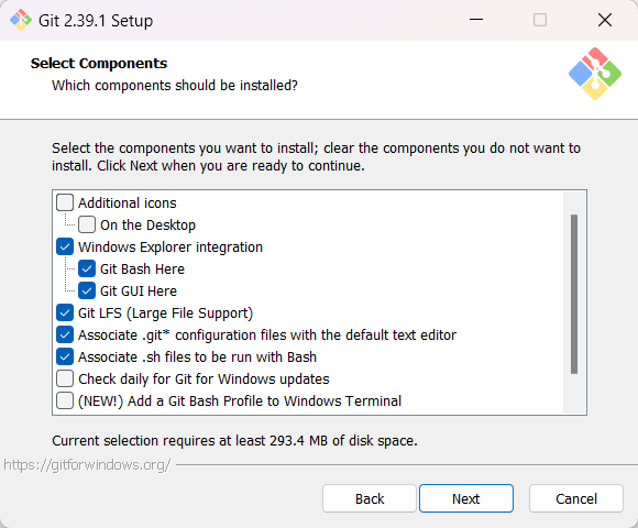 깃의 다양한 컴포넌트를 고르는 부분이다. 기본 설정되어 있는 것을 써도 충분하니 next~