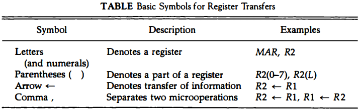 - 레지스터 전송은 치환 연산자를 이용한다.
