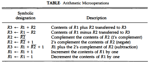 - 곱셈과 나눗셈은 산술 연산이지만 위 그림의 기본 연산 집합에 포함되지 않는다. 곱셈과 나눗셈은 디지털 시스템에서 조합 회로로 구현했을 때에 마이크로 연산으로 간주한다.